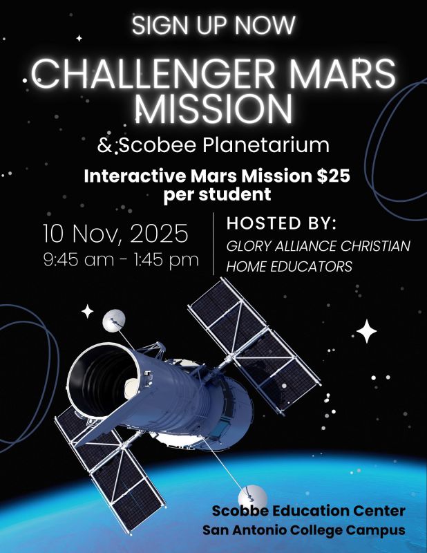 We are going on a Expedition MARS Mission at the Challenger Learning Centter @ San Antonio College AND the Scobee Plaentarium. Below is a lschedule. THIS IS A PAID FIELD TRIP! It is a set price for 34 students and 2 parent chaperones. $25 per student.